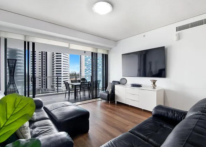 ベッドルーム2室のSierra Grand Spacious 3 Bedroom Apartment - Coasthm ゴールドコーストはゴールドコーストの住宅街に位置しており、オアシス ショッピングセンターから徒歩で5分以内です。 ザ・スター・ゴールドコーストとても近くに位置するアパートでは、サウナ、サウナ とサウナを楽しめます。